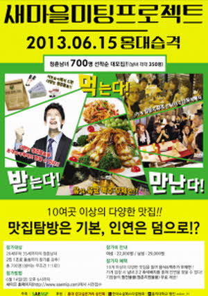 오는 6월 15일 홍대 걷고싶은거리에서 맛집 탐방과 미팅을 결합한 신개념의 행사인 새마을 미팅 프로젝트가 열린다.