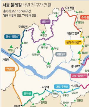 오해영 서울시 푸른도시국장은 “내년 서울둘레길 조성사업이 모두 완료되면 제주도 올레길, 지리산 둘레길에 버금가고 서울을 대표하는 관광명소로 자리매김 할 것”이라며 “서울둘레길은 시민과 가장 가까운 곳에서 시민의 건강을 지켜주는 힐링 공간이 될 것”이라고 말했다.